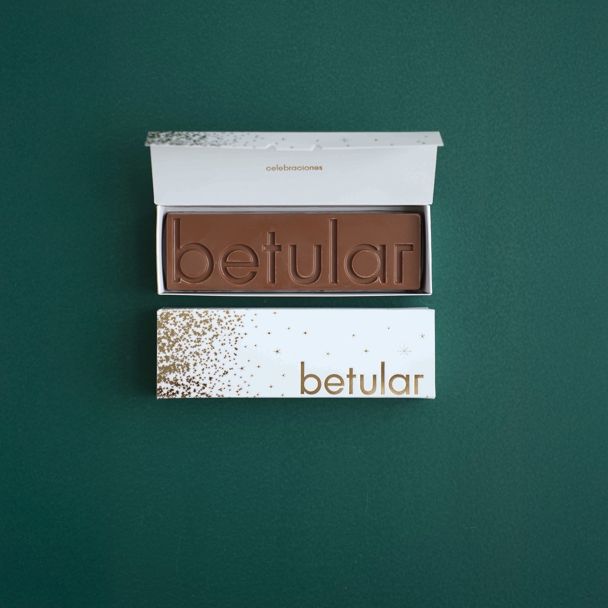 Turrón de chocolate con leche, gianduja de avellanas y cookies.